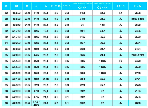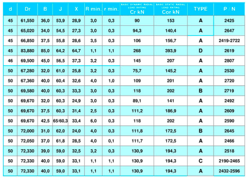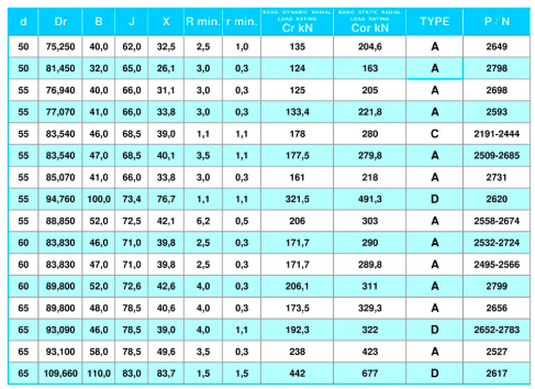 | 型號(hào) | d | Dr | B | J | X | R | r | Cr | Cor | 選型 |