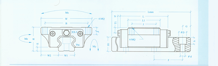 型號 | 參考資料(mm) | 基本荷重(kgf) | 容許靜力矩(kgf*m) | 重量(mm) | L max | G | 動額定負(fù)荷(G) | 靜額定負(fù)荷(G) | Mx | My | Mz | 滑塊 (kgf) | 滑軌 (kgf/M) | | 4000 | 20 | 850 | 1650 | 10 | 8 | 8 | 0.19 | 1.4 | | 4000 | 20 | 1450 | 2650 | 22 | 18 | 18 | 0.4 | 2.6 | | 1900 | 3330 | 28.6 | 23.4 | 23.4 | 0.52 | | 4000 | 20 | 2140 | 4000 | 36 | 32 | 31 | 0.57 | 3.6 | | 2996 | 5600 | 50.4 | 44.8 | 43.4 | 0.72 | | 4000 | 20 | 2980 | 5490 | 60 | 50 | 49 | 1.1 | 5.2 | | 5230 | 9270 | 125 | 95 | 95 | 2 | | 4000 | 20 | 3960 | 7010 | 96 | 75 | 73 | 1.6 | 7.2 | | 5230 | 9270 | 125 | 95 | 95 | 2 | | 4000 | 22.5 | 6740 | 12100 | 216 | 170 | 168 | 2.7 | 12.3 | | 8330 | 14950 | 267 | 210 | 210 | 3.6 | | 4000 | 30 | 9940 | 17100 | 367 | 293 | 288 | 5 | 16.9 | | 12820 | 22060 | 473 | 380 | 375 | 6.4 |