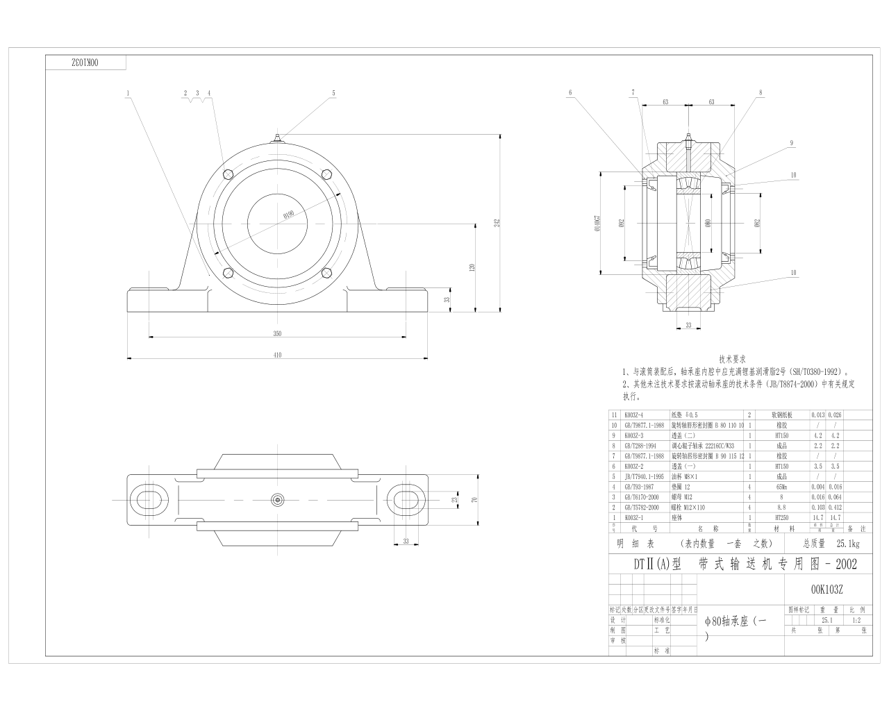 00K103Z傳送機專用軸承座 座體 透蓋 悶蓋 軟鋼紙墊 A型CAD圖紙