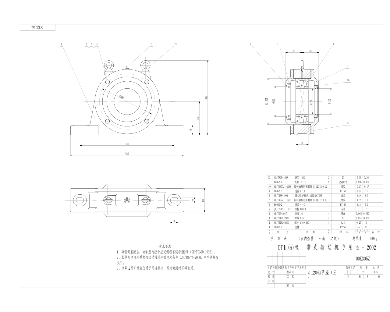 00K305Z傳送機(jī)專用軸承座 座體 透蓋 悶蓋 軟鋼紙墊 A型CAD圖紙