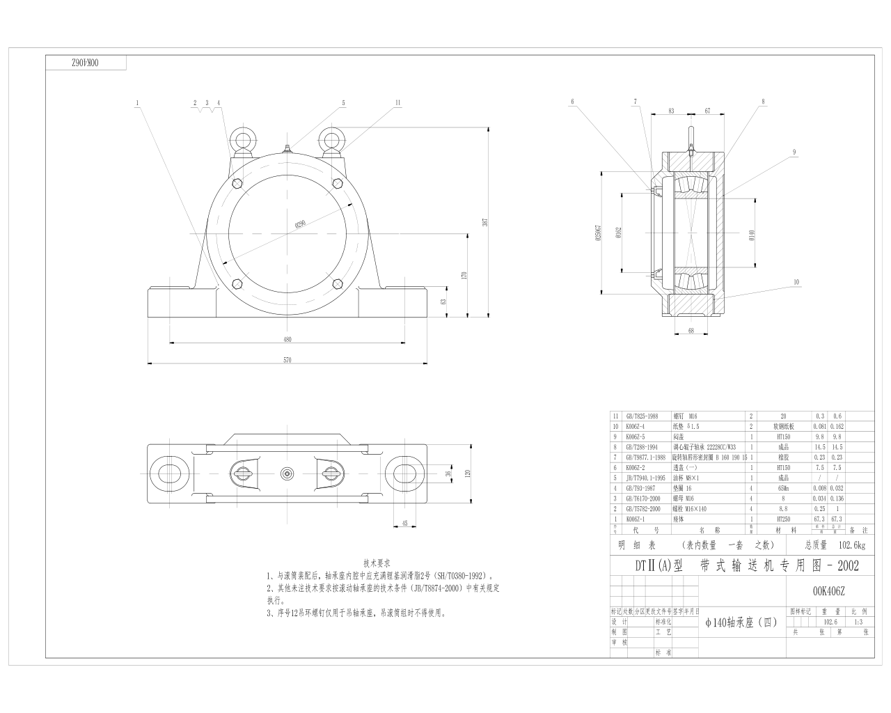 00K406Z傳送機(jī)專用軸承座 座體 透蓋 悶蓋 軟鋼紙墊 A型CAD圖紙